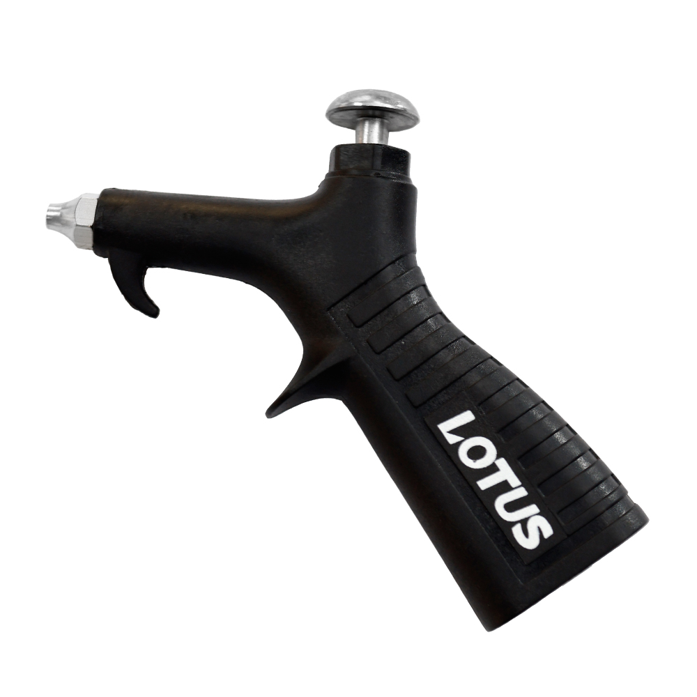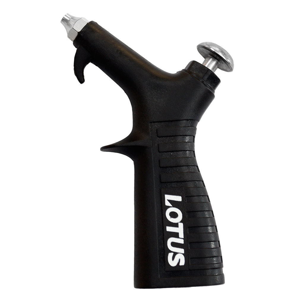 Pistola de ar para limpeza, produzida em poliamida preto, com rosca interna em latão, encaixe de1/4 NPT, fêmea,, bico 50mm, pressão 50 PSI, comprimento 12cm, bico e botão de acionamento em aço inox, Flex, super econômica.