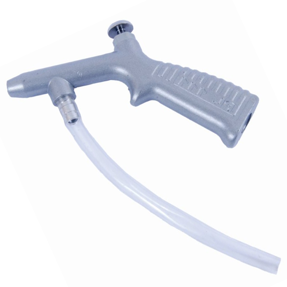 Pistola de ar para pulverização, em alumínio fosqueada, com rosca interna, encaixe de 1/4 NPT fêmea, bico 80 mm, pressão 50 PSI, comprimento 15 cm, bico de acionamento e espigão em aço inox.