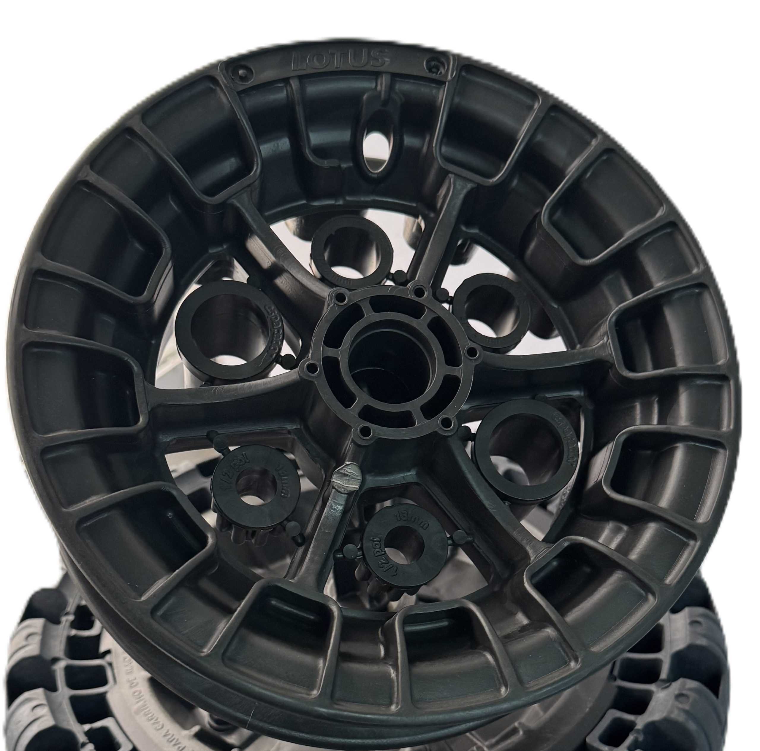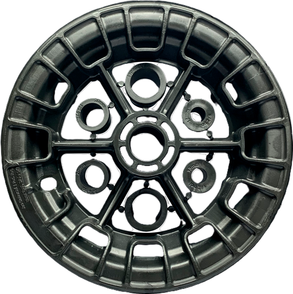 ARO DE PLÁSTICO SÓLIDO COM ADAPTADORES PARA QUASE TODOS OS EIXOS DO MERCADO.