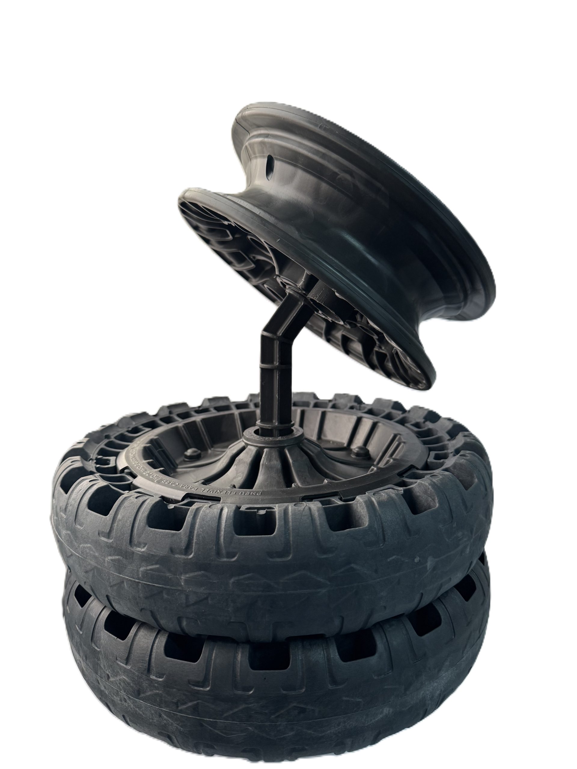 Ideal para lojas, oficinas e exposições, oferecendo praticidade e segurança na apresentação de pneus completos.